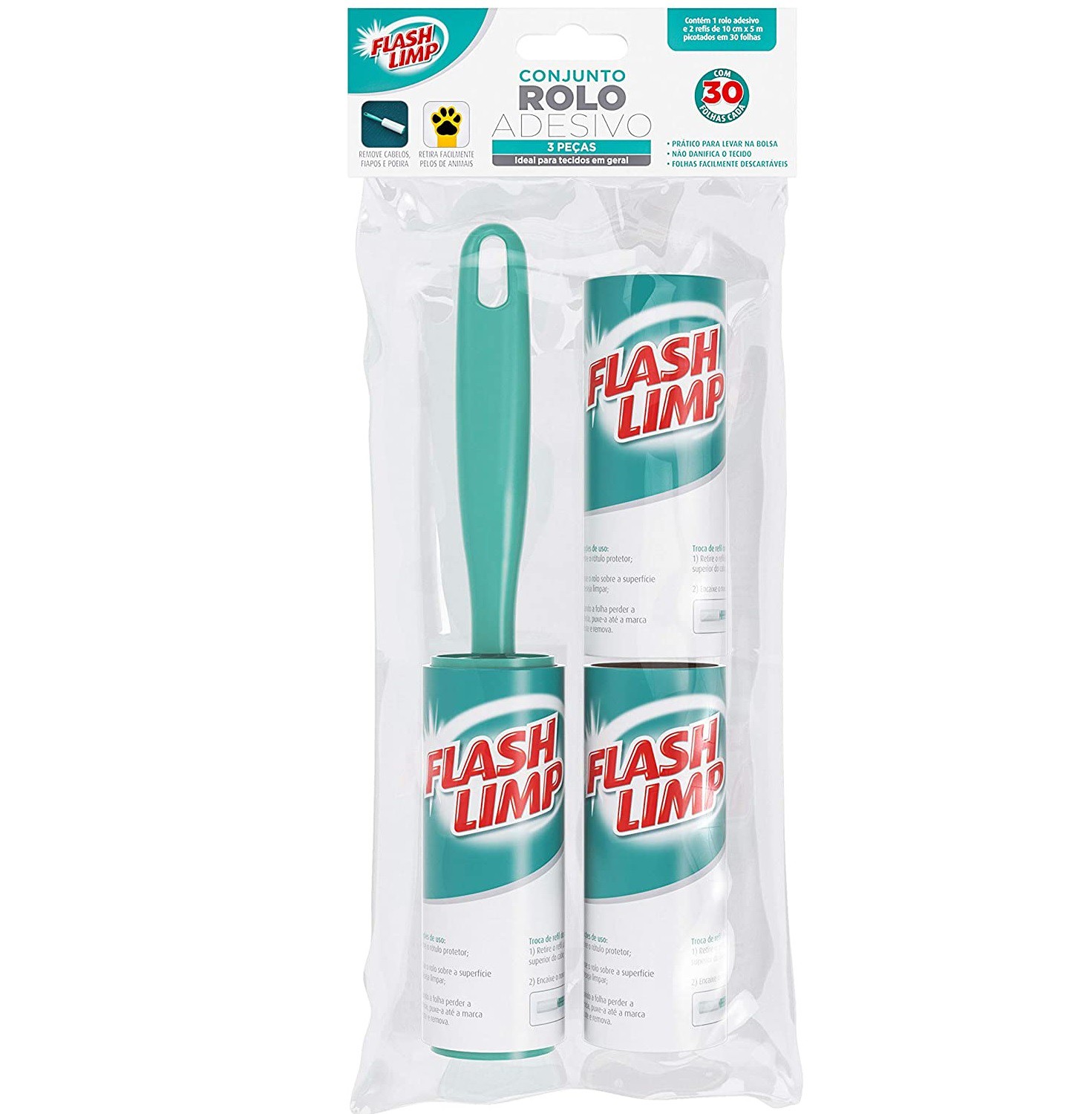 1 Conjunto Tira Pelo Rolo Adesivo Flash Limp (com 30 folhas cada refil).